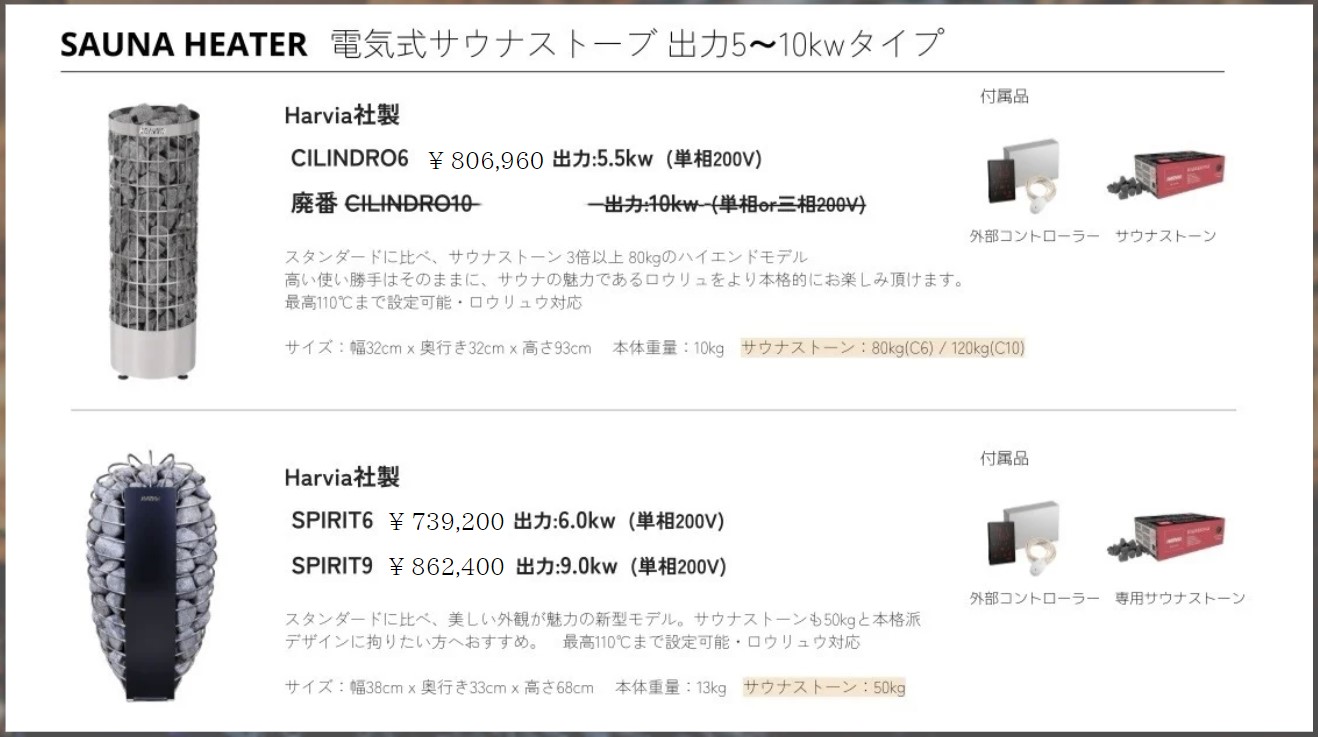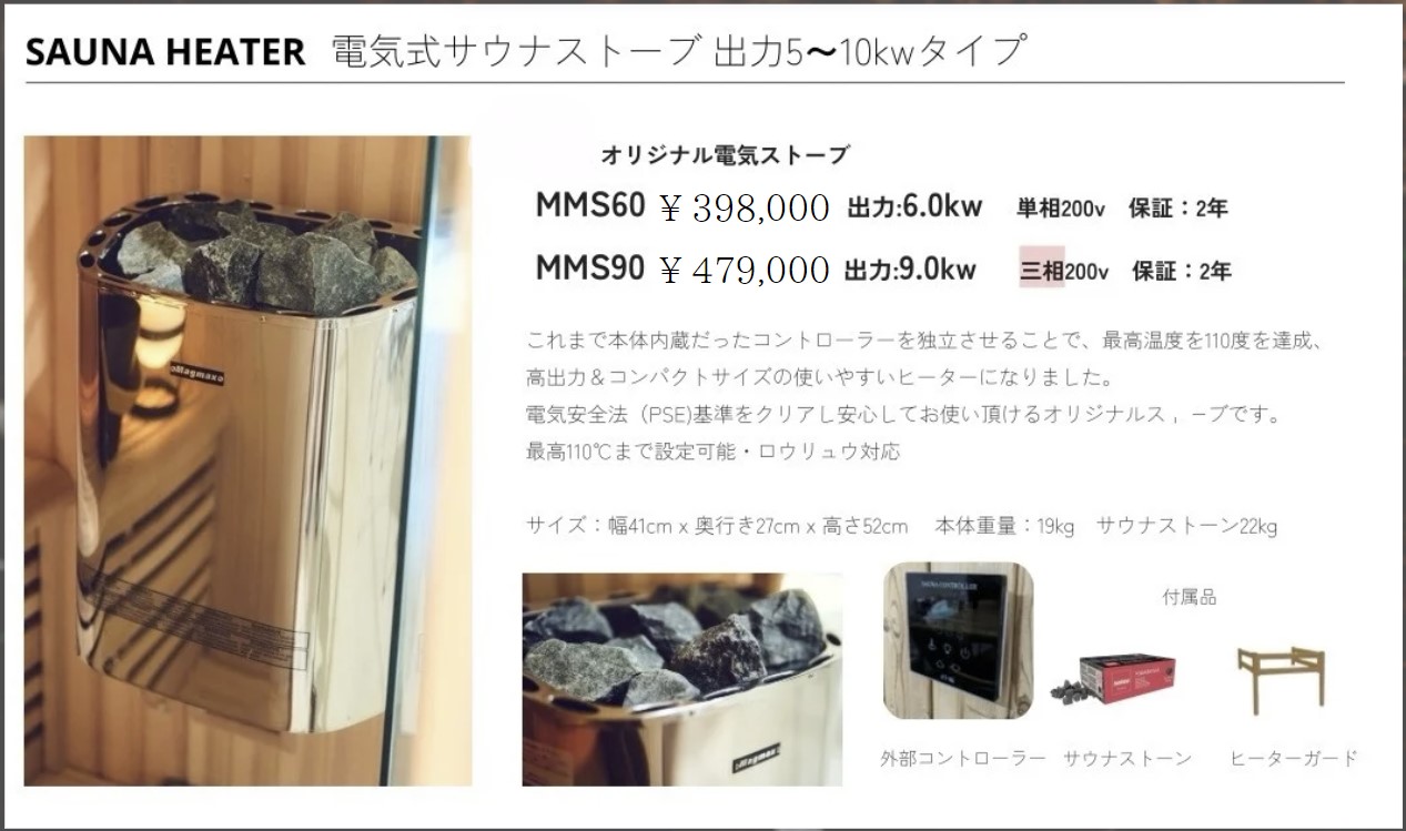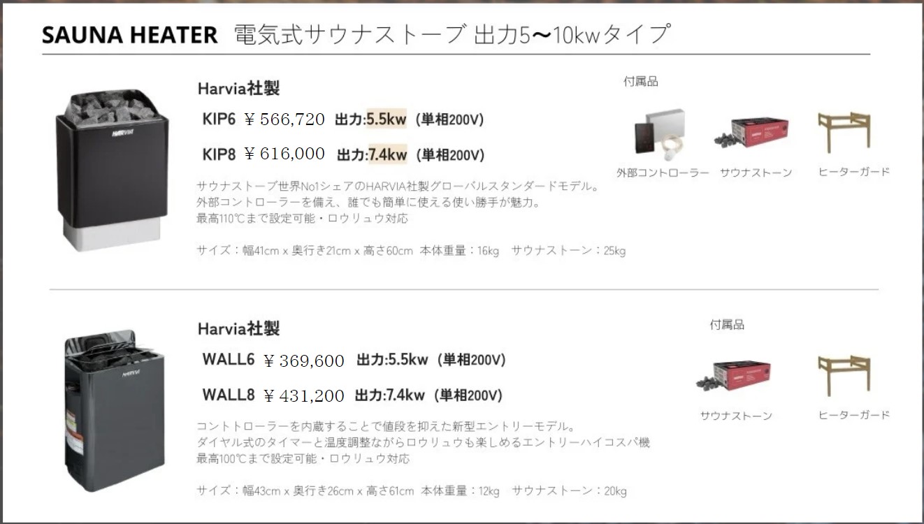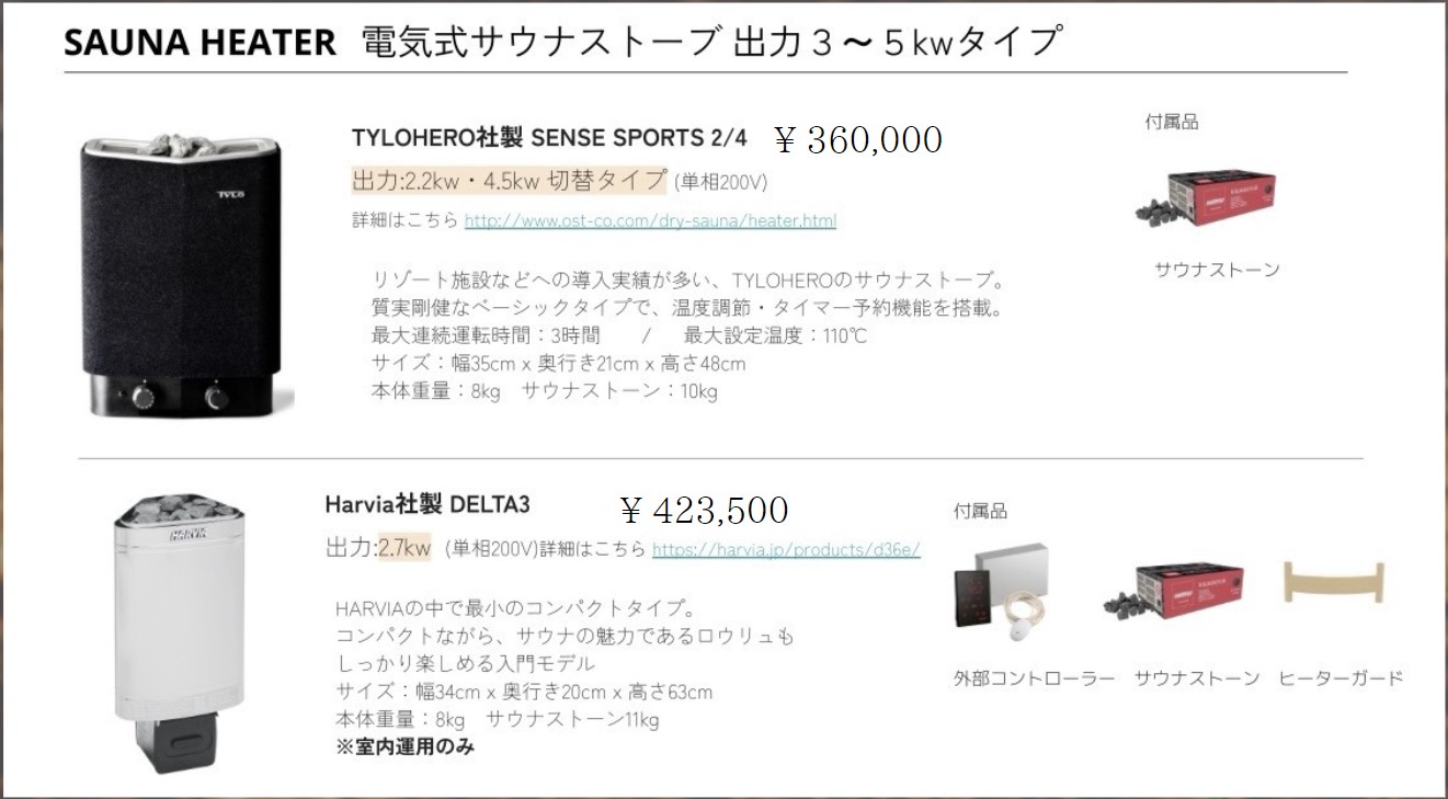 ※サウナヒーター別、